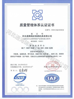 河北通海瑞宏铁路机具有限公司座落于石家庄天山国际制造产业园凤凰北街8号。   公司倡导员工坚持“卓越品质、真诚服务、齐心协力、勇于创新”的理念服务于广大客户。公司全面深化产品质量,建立完善的质量管理体系,通过了ISO9001质量认证,中铁检验认证中心CRCC认证证书,产品多次通过铁科院质量检验中心检验(如起复机具、抬轮器、救援工具等)。   为适应铁路快速发展,满足救援设备轻便快捷的要求,我公司是国内最早一家把三级钛合金液压起复机具运用到实际救援中的厂家,得到了铁道部和各铁路局领导的一致赞美和好评,铁路救援起复设备迎来一次革命性变革。起复机具通过了太原局科技成果鉴定,并获得了国家级新型实用专利。   为解决连体货车或大型养路机械等中间车轮脱线后救援难题,我公司投入大量人力、物力研制出无动力...... [ 查看详情 ]